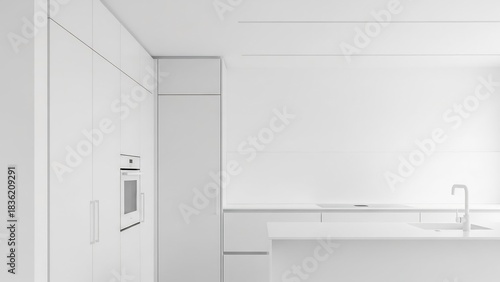 Minimalist White Kitchen Interior Design with Clean Lines.