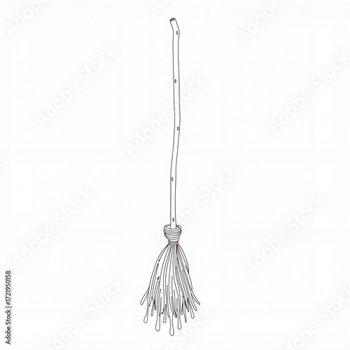 Minimalist witch broom with dripping slime, modern art symbolism