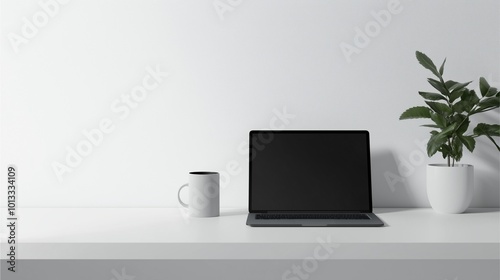 Minimalist Workspace with Laptop and Coffee mug on Desk for Productivity Imagery