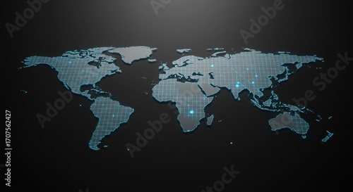 Minimalist world map outline with glowing digital grid lines, futuristic tech concept
