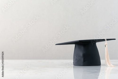 minimalistic image of graduation cap placed on elegant white surface with ample copy space for customizable text conveying