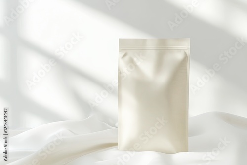 Minimalistic packaging design placed on soft fabric, highlighted