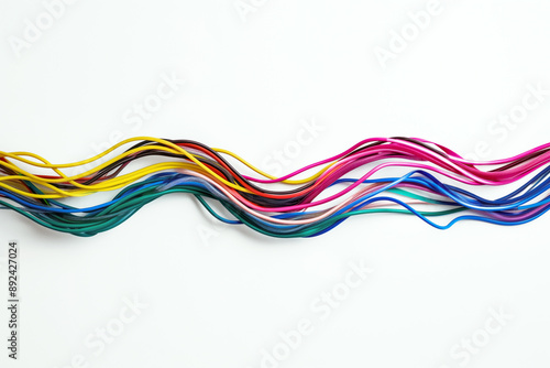 bundle, colourful, electric, wire, cable, technology, connection, network, energy, electricity, wiring, infrastructure, industry, digital, detail, industrial, contrast, many-coloured, streamlined, organised, high technology, arrangement, minimal, aesthetic, minimalistic, minimalist, white, background, isolated, closeup, vibrant, abstract, simplicity, bright, clean, modern, sleek, artistic, design