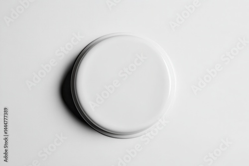 Minimalistic white plate on a smooth surface casting a subtle shadow, ideal for food photography