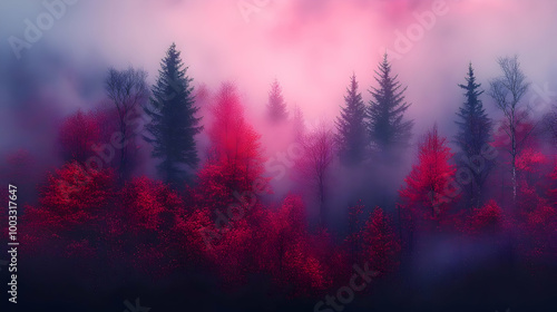 Misty Forest in a Dreamlike Purple and Pink Hues - Abstract Background