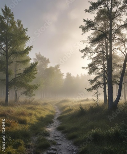 Misty morning over the forest in central Visby Gotland, fog, misty, landscape
