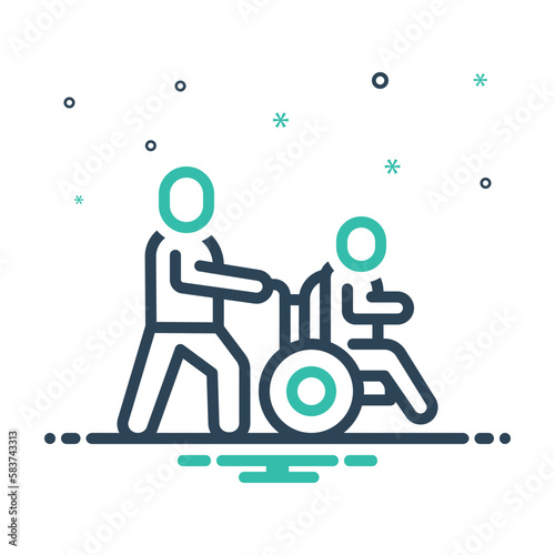 assisted, help, patient, through, lightened, wheelchair, safety, helper, care, logotype, symbol, shape, size, signs, icon, vector, logotype, illustration, silhouette