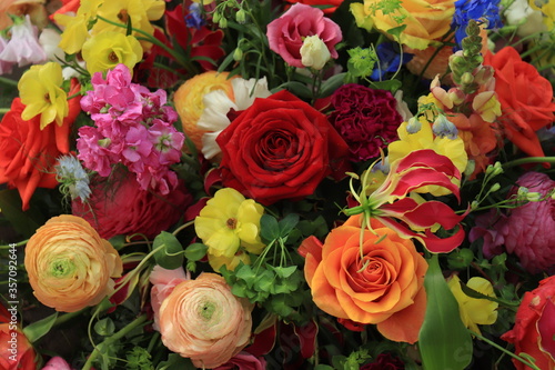 ranunculus, rose, rose, anemone, peony, purple, orange, white, yellow, berry, berry, pink, red, colours, colours, mixed, flower, flower, flower petals, nature, concept, detail, botanical, flora, arrangement, bouquet, green, spring, sun