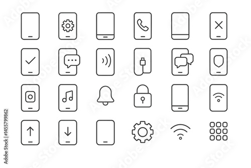 Mobile Interface Icons: A clean and modern collection of versatile mobile interface icons, ideal for various applications, conveying usability and user-friendly interaction.