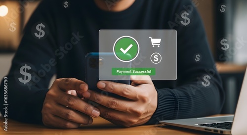 mobile payment success with digital transaction confirmation in modern e-commerce setting