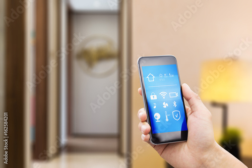 home, smart, automation, technology, touch, thermostat, mobile, phone, temperature, modern, house, control, display, screen, switch, digital, energy, interface, wireless, automated, icon, cyberspace, room, electric, device, monitoring, appliance, network, climate, remote, light, concept, innovation, communication, app, system, science, future, lifestyle, decoration, design, furniture, luxury, bed, indoor, hand, hold, bedchamber
