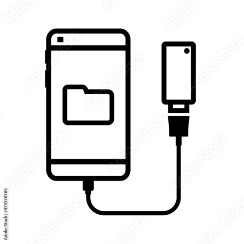 Mobile phone with flashdisk icon. Phone connected to flash drive. External memory sign. Ilustration vector