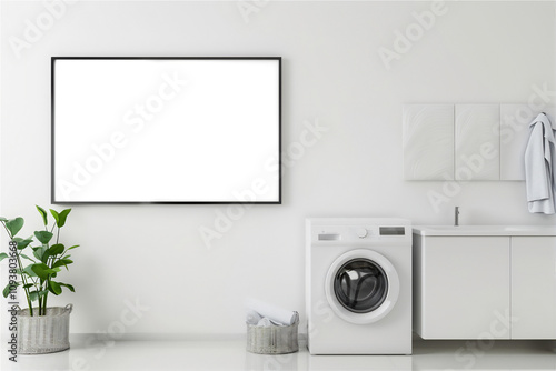 frame, poster, blank, laundry, washing machine, interior, room, kitchen, home, design, furniture, house, photo, sofa, minimalist, wall, empty, picture, gallery, wood, art, exhibition, three-dimensional, television, bathroom, television, living, nobody, sink, architecture, contemporary, lcd, plasma, screen, style