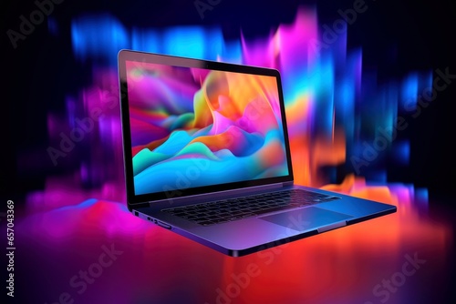 Mockup of beautiful laptop with multicolor background