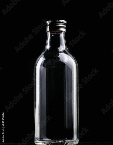 mock-up, glass bottle, isolated, black background, realistic, photorealistic, logo design, bottle