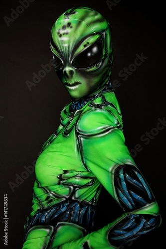 green, model, suit, alien, colours, background, design, beautiful, bright, equipment, person, studio, art, female, people, portrait, sensuality, black, individuality, element, pretty, stylish, woman, glow, glowing, artwork, original, gorgeous, posing, fine, costume, creation, skill, neon, mastery, cropped, impression