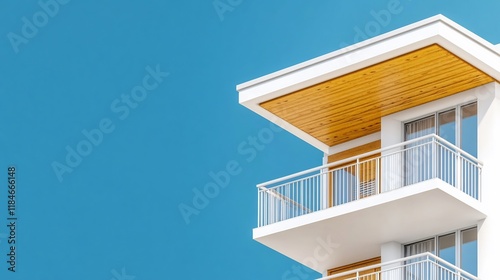Modern Apartment Building Close-Up Photo: Sunny Day Balcony Detail. AI Generated