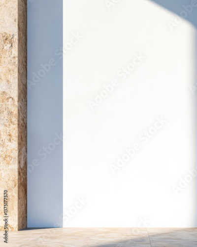 Modern architectural design featuring a minimalist wall in a sunlit space