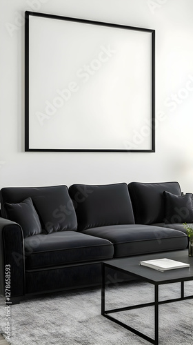 illustration, living room, modern, interior design, minimalist, home decor, furniture, contemporary, couch, black, whitewall, artwork, frame, interior, black-and-white, elegant, stylish, luxury, apartment, house, cosy, comfort, relaxing, decor, home, design, style, room, interior decorating, rendering, visualisation, digital artwork, graphic design