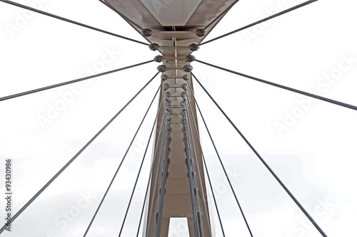 bridge, modern, abstract, sky, blue, up, detail, architecture, white, structure, view, construction, design, close, light, background, city landscape, building, urban, landmark, down, cable, silhouette, walk, support
