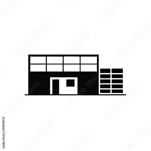 Modern building icon displays a simple architectural facade with minimal detail over transparent backdrop