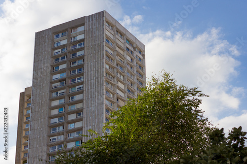 modern building with blue sky and clouds. 13th district in Paris