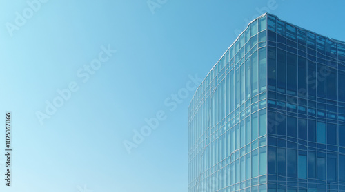 Modern Building with Curved Glass Facade Reflecting Sky – Contemporary Architectural Design, Sleek Glass Exterior, and Minimalist Urban Skyscraper