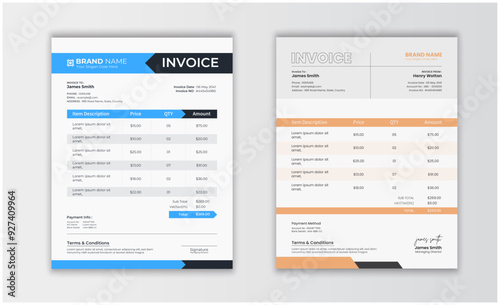 Modern business-type invoice template set. Clean invoice template design. Invoice template layout