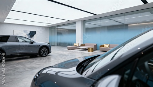 modern, car, showroom, interior, electric, contemporary, design, elegant, vehicle, automobile, auto, architecture, building, glasses, window, light, space, retail, display, marketing, sale, new, lifestyle, transportation, automotive, industry, business, style, luxury, clean, bright, environment, sustainable, future, technology, innovation, comfort, indoor
