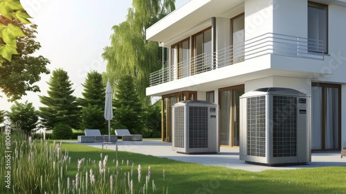 Modern city house with two air source heat pumps