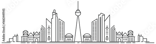 Modern City Skyline with Iconic Tower and Diverse Architecture cityscape urban.