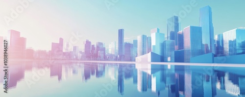 Modern city skyline with reflective water, showcasing sleek architecture and vibrant colors for a fresh urban feel.
