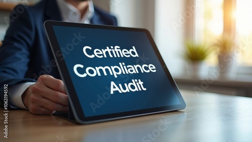 Modern Compliance Audit Display on Tablet in Bright Office Space