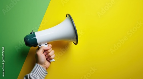 hand, white, megaphone, bold, modern, concept, communication, announcement, voice, loud, speak, message, attention, protest, demonstration, power, authority, activism, society, politic, media