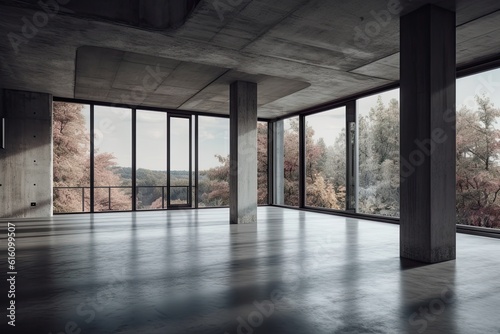 Modern concrete interior with panoramic view