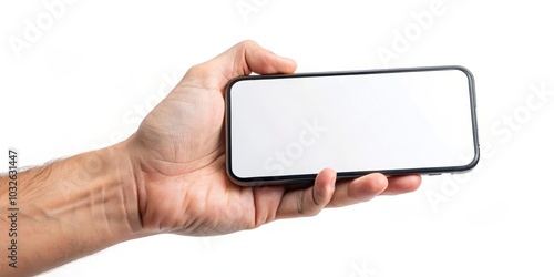 Modern Connectivity Close-Up of Hand Holding Smartphone on White Background, Tech Innovation Concept for Advertising, Social Media Clean, Minimalist Design