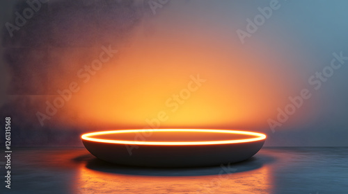 Modern Display Platform with Neon Light on Abstract Background