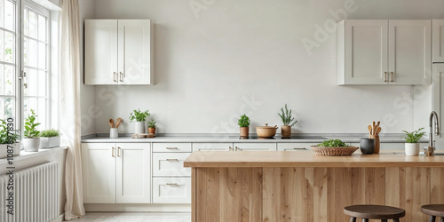 Modern Flat Minimalist Kitchen Interior with Blank Wall Mockup