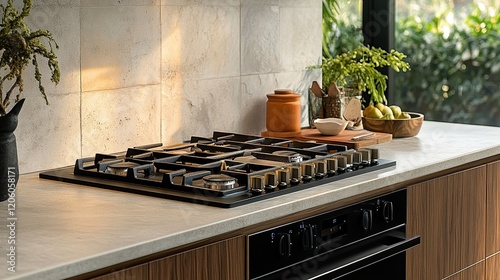 stove, kitchen, gas, cooking, modern, home, interior, design, house, appliance, oven, countertop, luxury, real estate, renovation, style, architecture, decor, room, property, residential, building, window, garden, view, nature, light, domestic, lifestyle, cooktop, food, heat, equipment, burner, flames, family, comfort, clean, elegant, new, space, apartment, remodel, cabinet, wood, tile, meal, dinner
