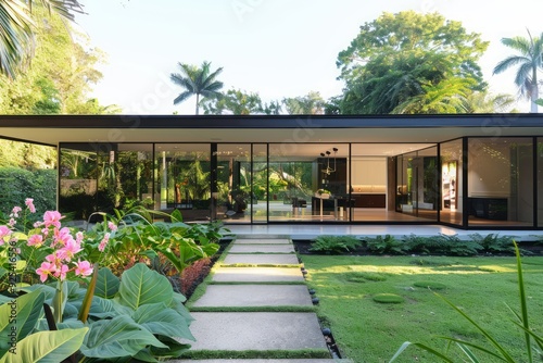 tropical garden, garden design, luxury home, modern architecture, tropical paradise, architecture, house, garden, park, exterior, tree, sky, building, summer, grass