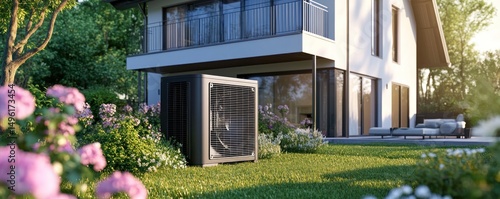 garden, house, exterior, modern, home, technology, energy, efficient, renewable, sustainable, environmentally friendly, environment, climate, green, grass, flower, plant, landscaping, luxury, residential, building, property, real estate, appliance, equipment, machinery, air conditioning, heating, cooling, comfort, design, architecture, summer, daytime, sunlight, bush, yard