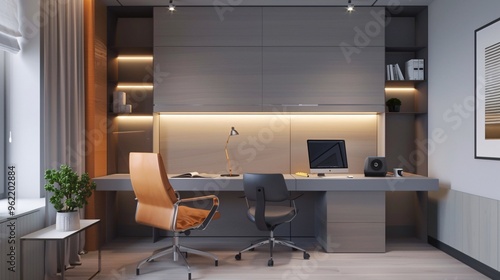 Modern Home Office Interior Design with Minimalist Desk and Comfortable Chairs