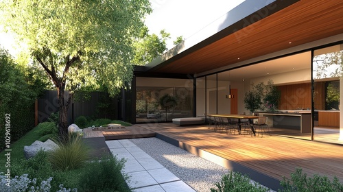 modern, architecture, home, house, patio, deck, garden, yard, landscape, exterior, minimalist, contemporary, style, luxury, terrace, backyard, relax, pool, nature, green, tree, plant, stone, gravel, wood, glasses, sunlight, summer, summer, backyard, greenery, beautiful, elegant, cosy, peaceful, tranquil, serenity, roomy, open, natural light, luxury home