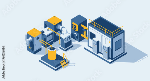 Modern Industrial Manufacturing Plant Equipment and Machinery Isometric View.