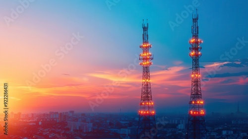 Modern infrastructure with radiant communication towers, glowing connectivity