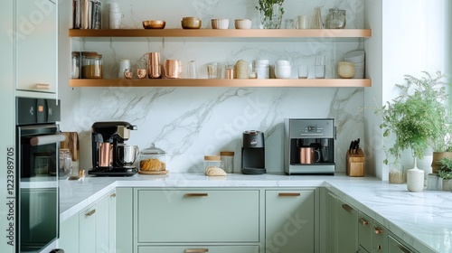 kitchen, hot drink, copper, marble, shelving, breakfast, modern, appliance, countertop, home, interior, design, room, style, decor, house, cooking, drink, food, coffeemaker, espresso, machine, brewing, cafes, morning, lifestyle, luxury, elegant, stylish, clean, minimalist, bright, space, aesthetic, comfort, warm, cosy, rustic, contemporary, neat, organised, happy, relaxed, calm, fresh, homelike, inviting
