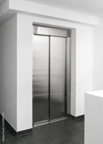 Modern lift in building, Hallway with elevator doors, New interior with stainless steel elevator
