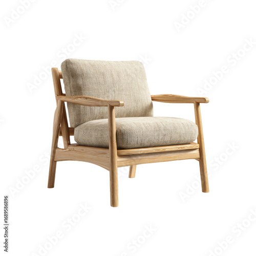 Modern Light Beige Upholstered Armchair with Light Oak Wooden Frame