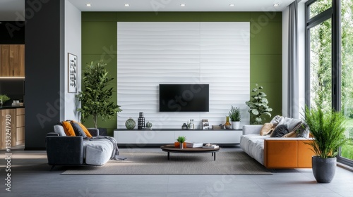 living room, design, modern, furniture, green, plant, decor, interior, cosy, sofa, wall, television, aesthetic, natural light, home, architecture, minimalist, arrangement, cushion, table, rug, wood, contemporary, space, elegant, comfort, lifestyle, seating, bright, indoor, decoration, stylish, greenery, texture, warm tones, welcoming, urban, pattern, open space, ambience, simplicity