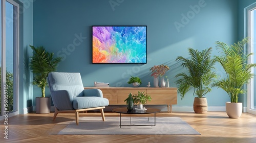 modern, living, room, interior, interior design, cosy, relaxing, colourful, art, decor, furniture, plant, light, sunny, roomy, wooden, blue, contemporary, stylish, comfort, minimalist, aesthetic, warm